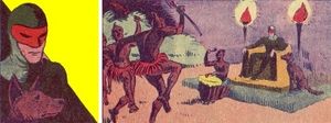 In issue 249 from July, 1939 was a story by Lemmi with a new character, "Il Giustiziere Mascherato" dressed in green tights and a red mask. This was in fact a thinly disguised redrawn version of "The Phantom". Next L’Avventuroso printed an American Phantom adventure and then 4 more stories of "Il Giustiziere Mascherato" by Lemmi.